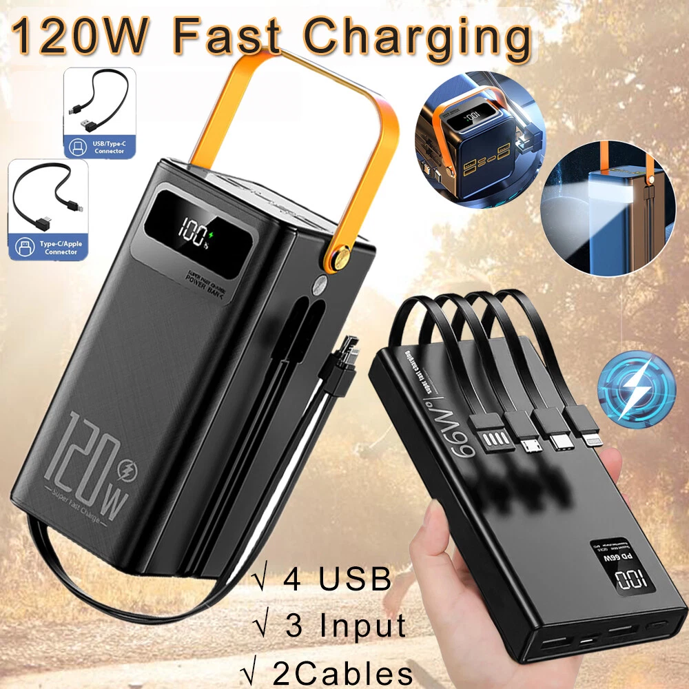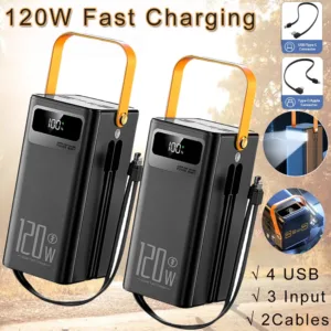 120W 50000mAh Portable Power Bank with Built-in Cables & LED Light