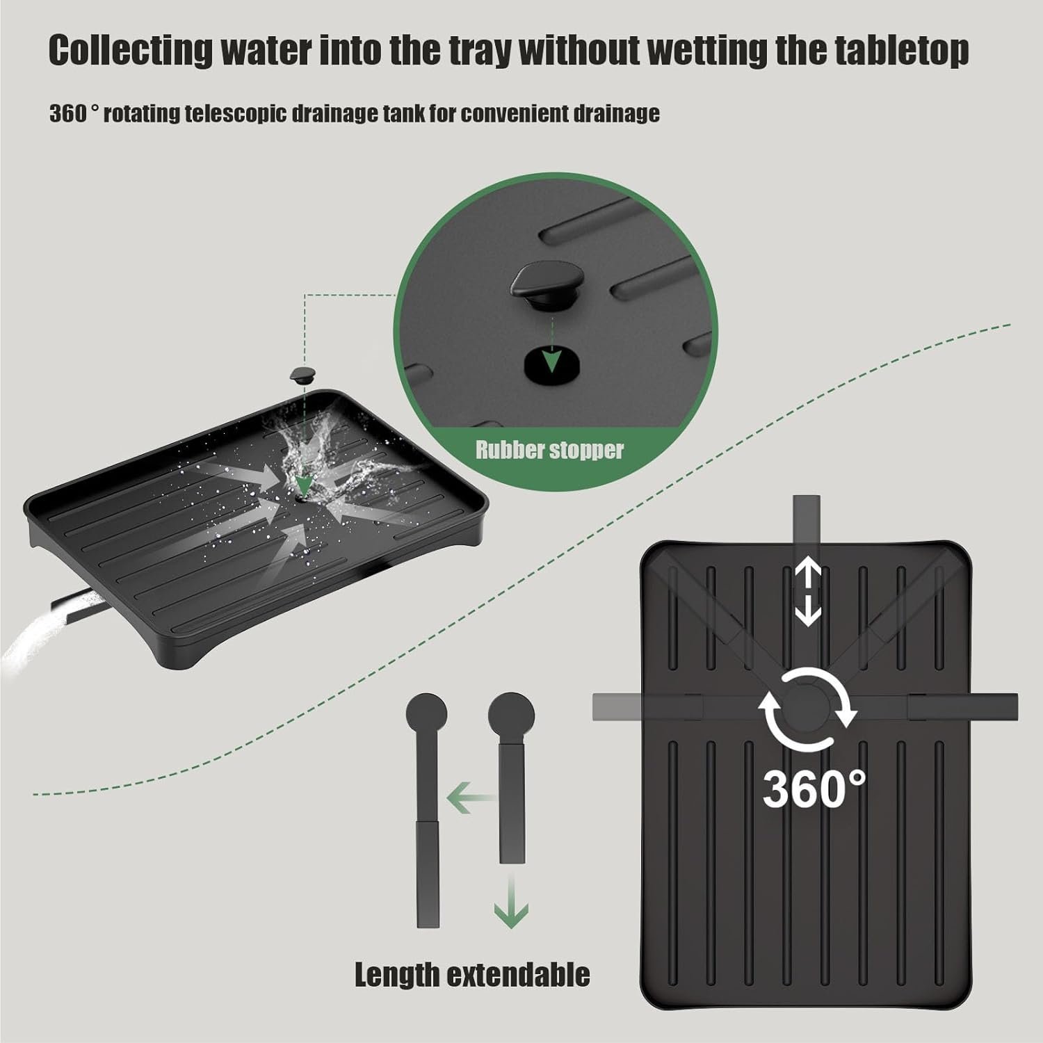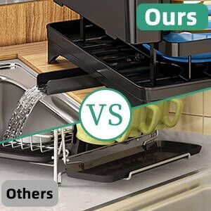 Our dish rack drainer comes with 2 telescopic extension drains, which can be adjusted to the right position according to the location of the sink.
