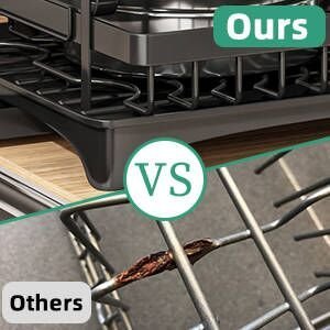Dish dryer rack consists of concave feet to protect the countertop from scratches, and a retractable drain to keep the countertop dry and watertight. Legs with rubber covers ensure stability and prevent the tableware drying rack from sliding.
