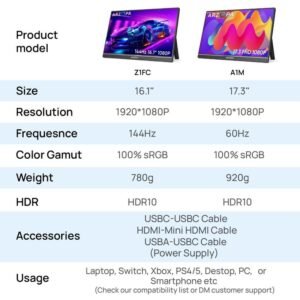 Highly recommend ARZOPA portable monitor! 16.1/17.3-inch options are both great, 1080P IPS, smooth refresh rates, universal compatibility¡ªperfect in every way.