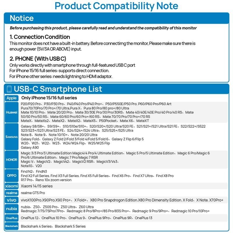 Wide compatibility: works with PC, Mac, iPhone, Android, Xbox, PS5, Switch¡ªeverything I own. Truly versatile portable monitor.