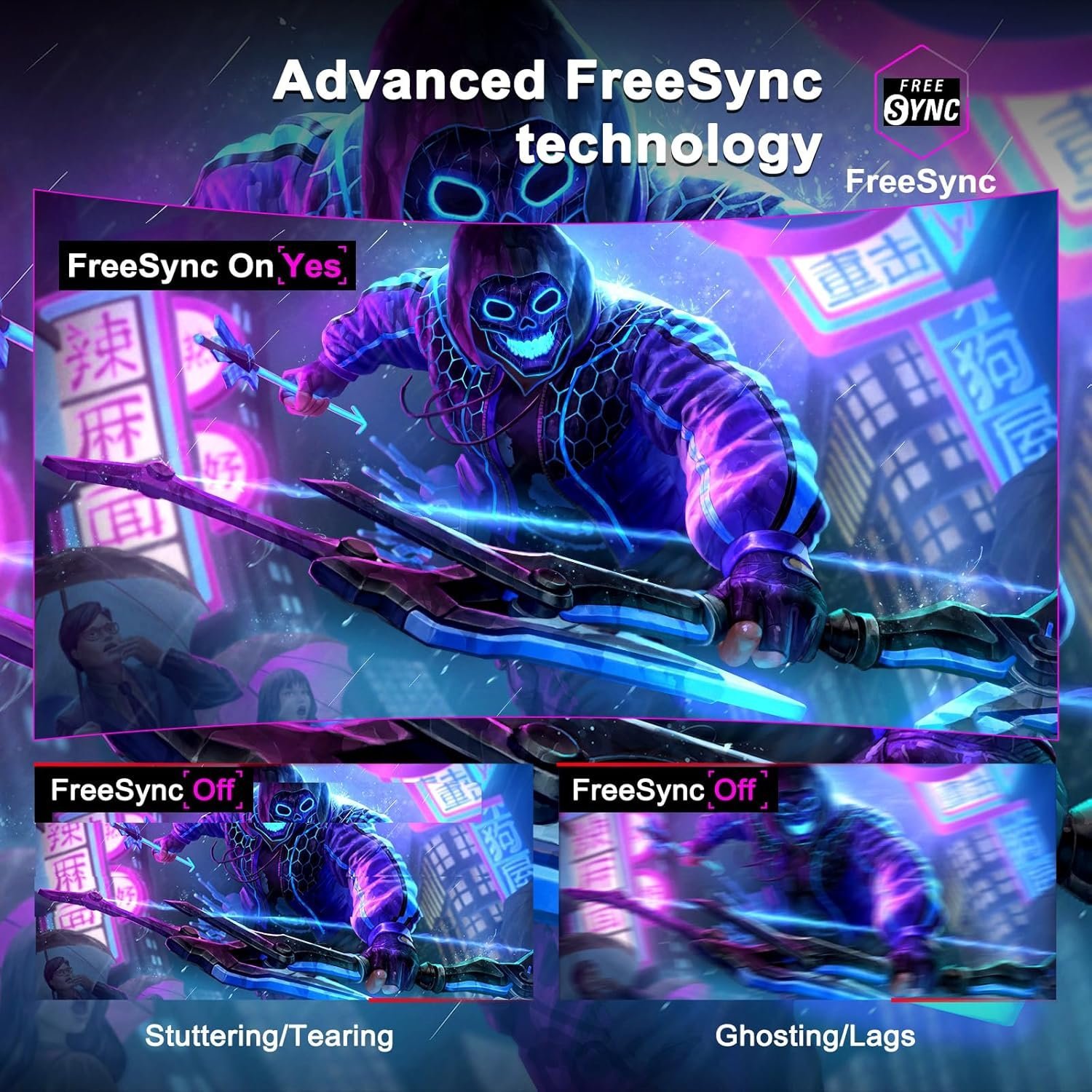No screen tearing, no stutter thanks to AMD FreeSync! Colors are vibrant, build quality is solid, and the ultra-slim bezels give a modern, clean look.