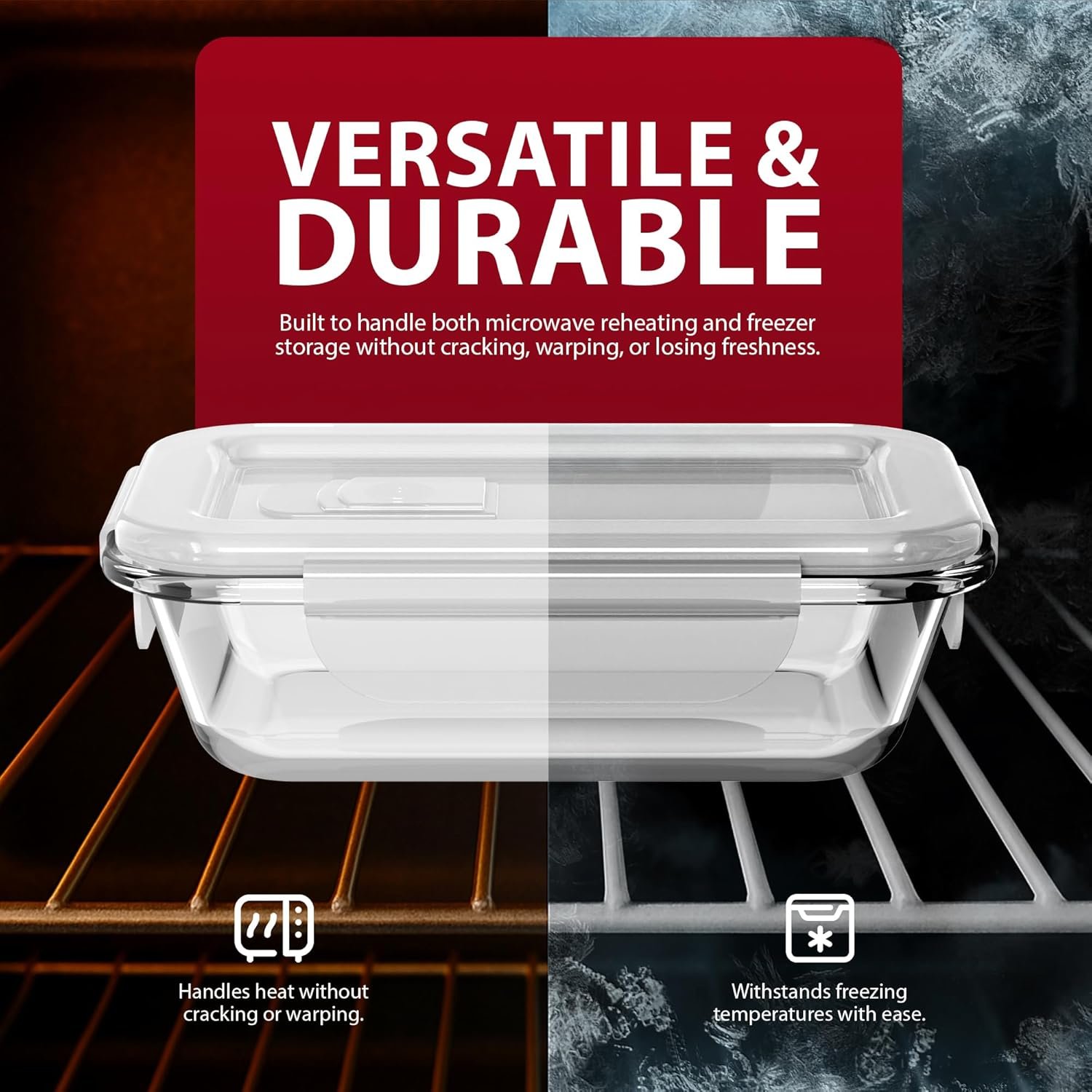 • LEAKPROOF AIRTIGHT LIDS FOR MAXIMUM FRESHNESS – Each container features a secure snap-lock lid and silicone seal to keep contents fresh and prevent leaks or spills. These glass storage containers with lids are perfect for both home use and on-the-go lifestyles.